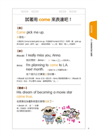 實際翻開字典,就可以看到 come 其實有著各種字義、用法及衍生片語,根本不可能全部一一記住,就算真的拼命記住,要運用自如又是另一回事了。然而,只要學會「核心概念」,就能輕易從概念推衍出各種重要的相關用法,並在日常生活中運用自如,用英文自然表達生活大小事!