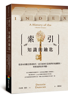 儘管當前的資訊文化建立在機器代替人類閱讀,但索引的功能依然歷久彌新,無論推特貼文、圖片或音檔,都可以透過與索引有異曲同工之妙的主題標籤進行篩選與串連。作者提出多年來的研究成果,不僅是索引的發展里程碑,也包含許多有趣而隱沒於歷史的細節,以及從未被提及的故事: