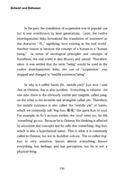 So why is it called bardo (lit. middle yin)? Just now I said that in Chinese, this is also justified. Everything is relative. On one side, there is the obviously visible and tangible, called yang; on the other is the invisible and intangible called yin. Therefore, the middle existence is also called the “middle yin” or bardo, which we commonly call “ling-hun, 靈魂,” the spirit-hun or soul. For example, in Xu's account earlier, the ‘soul’ went out, he felt ‘something’ go out. Because he i...