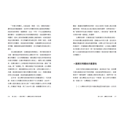 過去台灣面臨的藍綠或統獨選邊站,問題本身相對單純,但是自從兩岸開放三通後,中國對於台灣的影響力大增,更帶來了中國文明體系的認知邏...