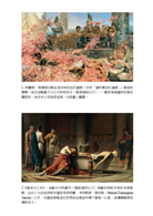 他還有其他宴會把戲,像是一坐上去就會慢慢洩氣、座上賓最後變成坐在地上的放屁坐墊(西方文化最早的紀錄);把蠟或玻璃製成的假食物端給身分最低下的賓客,害他們整晚肚子咕嚕叫,只能眼睜睜看著地位更高的人享用真正的食物;又或者趁狂歡達旦的客人醉倒睡著時,把馴化的獅、豹、熊放出來到他們之間,有些客人醒來不是被咬死,而是被嚇死。據說埃拉加巴盧斯曾經往赴宴的人身上灑花瓣,結果花瓣灑得太多,覆滿賓客全身,導致他們窒息;而這件跟放野獸一樣要命的事情,也成了十九世紀畫家勞倫斯.阿爾瑪─塔德瑪(Lawrence Alma-Tadema, 1836-1912)的靈感來源(圖1)。