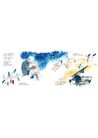 當許多大人誤解了音樂學習等同於技能精進時,《鋼琴》繪本裡,小男孩在音樂世界的深刻看見令我深深觸動。音樂可以讓回憶與思念成詩;可以如色彩繽紛的彈珠跳躍,如鳥兒成群飛翔;而「鋼琴」更可以是一個氣勢磅礡的大交響樂團,在此「孤獨世紀」裡陪伴寂寞的靈魂,輕盈了生命,滋養了心靈。