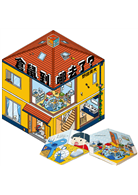 首先,仔細觀察封面上二樓男孩的房間,飼養倉鼠的箱子門是開著的,倉鼠還朝讀者揮手!接著,畫面隨著小男孩的腳步回到房間時,房間的擺設竟與封面有所不同。而要尋找的那片拼圖,又是從哪裡掉下來的呢?記住每個空間中出現的物品,因為它們隨時可能在其他地方冒出來!