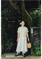 略為膨脹的箱型輪廓,搭配具有份量感的氣球袖,再加上尺寸剛好的圓領,就是一件可正式、可休閒的優秀洋裝。