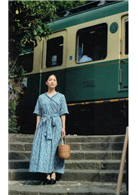 這款上半身採交襟設計的印花洋裝,有種60年代的英式復古氣氛,領圍、袖口的荷葉邊裝飾,帶來微甜印象。