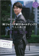 今年迎接出道5周年的傑尼斯偶像團體Johnny`s WEST,以「如果Johnny`s WEST成員都在同一間公司上班的話…」為主題,每期都會請到一位Johnny`s WEST成員變身上班族的本誌特別連載,這一次特別要請到濵田崇裕登場。