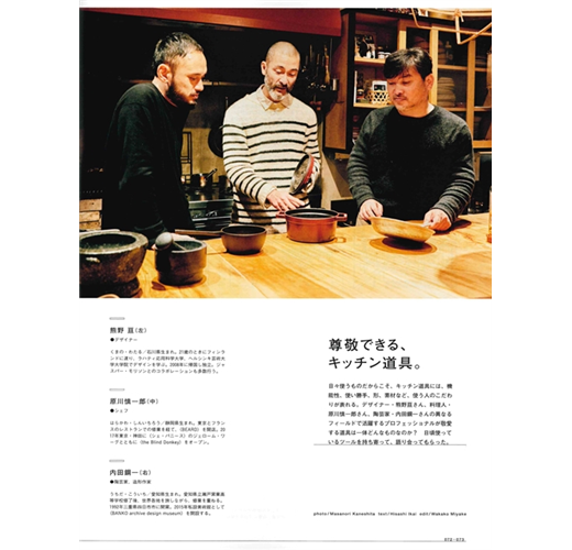 BRUTUS就從交流的角度出發,送上最新廚房特集。為大家特寫料理男子的廚房,打破無聊的刻板印象,再研究建築家與料理愛好者攜手打造的個性廚房,並分析廚房設計帶來的生活新轉變。同時也介紹最新廚房家電的魅力,以及專家達人們愛用的廚房道具,掌握廚房最新的進化樣貌。