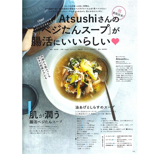 你知道嗎?其實肌膚的好壞和腸道有很大的關聯,只要腸道健康就能夠擁有美麗的肌膚,本單元特別要請到蔬菜品嚐師Atsushi來教大家如何做出讓肌膚變美麗的湯品食譜。