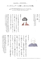 首先訪問27位來自各行各業的名人,請他們分享刻在自己心底的那句話。4位經驗豐富的訪談者也談到令他們印象深刻的話語,接著分析人氣藝人的談話技巧,重溫明星名人的畢業演講,也要從和田誠的繪畫文字、韓流文化、人氣歌詞、隨筆創作…等角度,來了解文字簡單而深刻的動人魅力。