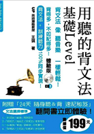 ☆體驗版CD僅含部分內容!另售;用聽的背文法基礎Level【光碟完整版CD1-7】(定價399元)(1)附贈【體驗版CD1片】,背文法像聽音樂一樣輕鬆!體驗版CD收錄;「1be動詞」。CD內容錄製詳細,不看書就能輕鬆背文法。隨時隨地皆可學,時間、地點、姿勢自由選,開車聽、坐車聽、走路聽、睡前聽,透過反覆聽讀訓練,日後聽到別人說英語時能更快理解,保證【背文法+訓練聽力】同步實現!。CD錄音方式Step1;聽【文法基本介紹】→Step2;聽【中文例句】→Step3;聽【英文例句】→Step4;聽【例句解說】→【聽】下一個文法概念(2)中英雙語解說【背文法像聽音樂一樣輕鬆】「用聽的」學會「動詞變化」「文法規則」「接續方法」「例句演練」(3)一定要會的【英文12大文法原則】1be動詞∕2動詞∕3助動詞∕4名詞∕5冠詞。定冠詞∕6所有格∕7形容詞∕8副詞∕9比較級∕10疑問詞∕11連接詞∕12介系詞(4)附贈可隨身攜帶【24天隨身聽&背速記秘笈】站著、坐著、躺著、走路時,隨時可聽、可學、不懂的馬上查詢