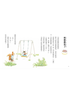 公園裡的秋千只有一座,兩人說好要輪流玩,一人盪十下。小老鼠盪著盪著,小松鼠突然大叫: