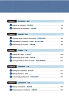 本書依據國人在職場上的需求,以深入淺出的寫作方式來編撰。全書共20章50個單元,每章節都是職場人士必備主題:『簡介』、『會議』、『商務旅行計劃』、『建議』、『邀約』、『詢問產品及報價』、『下單』、『付款』、『投訴』、『查核進度』、『提案』、『報告』、『社交場合』、『應徵工作』、『協調』、『編列預算』、『銷售信函』、『行銷』、『要求澄清』、『技術』。