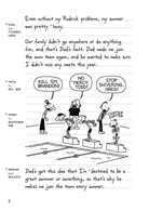 《遜咖日記》中的主人翁葛瑞雖然已不是個任憑大人擺佈的小娃娃,但生活中還是有許多他自己所無法左右的事,這種苦悶相信是不少青澀少年們曾經有過的經驗。儘管如此,《遜咖日記》讀來絕無苦悶之感。看著葛瑞細數他的大小衰事,搭配著令人會心一笑的可愛插圖,使整本書有著恰到好處的黑色幽默。文章旁邊的貼心註解省卻了翻查字典的繁瑣,加倍了閱讀的樂趣。這是一本可以讓你忘記自己是在「啃」英文,進而自在享受閱讀樂趣的書。