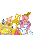 鍋子裡美味的豆子湯傳來陣陣香味,實在讓人口水直流。動物們忍不住了,紛紛說要嚐一口豆子湯。結果,大家都異口同聲稱讚豆子湯好好喝。瑪歌婆婆聽了,一時不小心說溜了嘴:「當然啦,這可是最會做菜的梅歌婆婆煮的湯喔!」梅歌婆婆嚇了一大跳,連忙說:「當然囉,這可是種菜專家瑪歌婆婆種的豆子啊!」