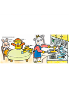 名人推薦:「這本翻翻書中,每一種蛋糕看起來都好好吃。書裡不只出現了各種點心,還能透過軋型翻頁體驗做蛋糕的過程,或將餐點放到桌上給客人,這是只有翻翻書才能展現的效果。翻開蝴蝶頁,還能看到動物村的地圖,兒子會開心地仔細閱讀地圖裡的訊息。」-讀者 ジョージ大好きさん