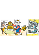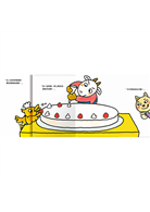 小讀者不但可以從《山羊蛋糕店》中認識各種甜點的名稱、想像好吃的蛋糕滋味,還能透過作者精心設計的翻翻頁玩扮演遊戲,化身甜點師傅和服務生,幫動物們煎鬆餅、切蛋糕捲,以及體驗烤蛋糕的過程。