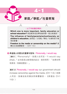 應用4.2:I believe school education is much more important than family education. First of all, parents definitely have an impact on their children’s academic achievement. (我相信學校教育遠比家庭教育更重要。首先,父母親絕對能影響他們孩子的學術成就。)