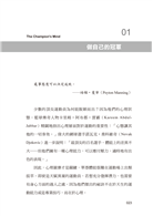 ★ 單憑體能難以在運動場上出類拔萃,心理競賽才是關鍵即使天賦異稟的運動員,想充分發揮潛力,亦必須在身心方面有過人之處。因為冠軍者傑出的祕訣,不在於天生的運動能力或專業技巧,而在於心理。「運動有90%在於心理層面,剩下的才在於身體。」