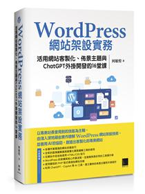 淺顯易懂說明WordPress的架構與核心概念;並精闢點出主機、網域的使用建議;實況分析佈景主題、外掛設定;分享自身經驗如何提高SEO、並創造收入。