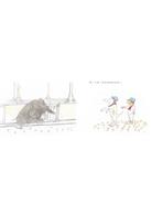 全書以幽默、有趣的情節傳遞「環境保護」的重要性。明快簡潔、反覆出現的文本敘述,不僅營造出適合孩子閱讀的節奏感,也逐步加深讀者對瀕危物種與環境問題的理解。在圖像上,約翰.伯寧罕結合鋼筆線描、粉彩與拼貼等,展現了極具辨識度的插畫風格:自由流動的線條、柔和層疊的色彩,以及未過度修飾、保有隨興筆觸的構圖。畫面在童趣與詩意之間取得平衡,既呈現出孩子夢境般的想像,也隱含對自然環境與瀕危動物命運的關懷。