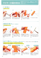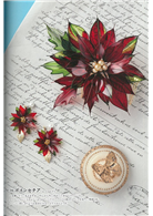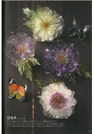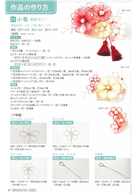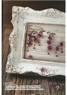 晶瑩剔透如薄膜般的水晶花飾品,由於是使用樹脂液來製作,儘管看起來薄而通透,實際上卻不容易破損,兼具美觀和耐用兩大優點。水晶花的製作方法,基本上是先配合誌中的型紙,以手指或鉗子將鐵絲彎折成指定的形狀,接著浸入專用的DIP來覆上樹脂薄膜,待其乾燥後再以指甲油來著色,最後再施以增強硬度的加工塗裝。做完零件之後,再依序加以組合,安裝上飾品用金屬零件,便大功告成。