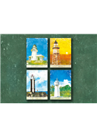 挑選四個台灣的燈塔做組合,圖案分別是三貂角燈塔、安平燈塔、查母嶼燈塔、太平島燈塔。