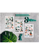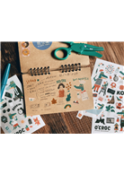 Dimanche迪夢奇感壓貼使用的方式跟傳統貼紙很不一樣,貼紙本身沒有任何刀模,只要把想要使用的圖案,連同背後的離型紙一起剪下,撕掉離型紙後,將貼紙壓在想要黏貼的位置上,稍微反覆施壓使它完全與紙張貼合,就可以將表層的透明保護膜撕下。