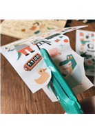 撕下表層保護膜時要慢慢撕,如果發現貼紙圖案沒有完整黏在紙張上,就壓回去反覆多刮幾次,再嘗試撕下保護膜。