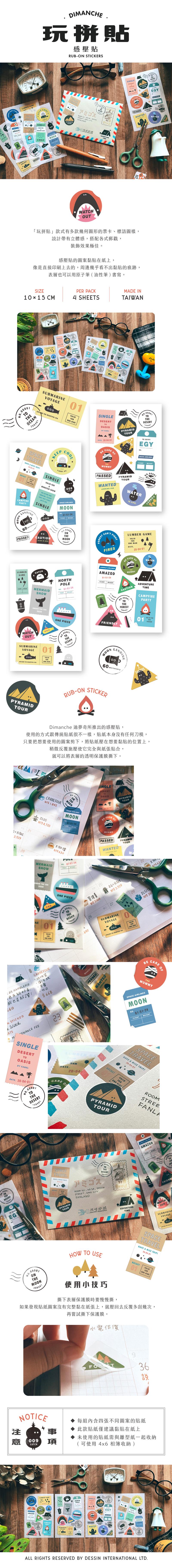 Dimanche迪夢奇所推出的感壓貼,使用的方式跟傳統貼紙很不一樣,貼紙本身沒有任何刀模,只要把想要使用的圖案剪下,將貼紙壓在想要黏貼的位置上,稍微反覆施壓使它完全與紙張貼合,就可以將表層的透明保護膜撕下。