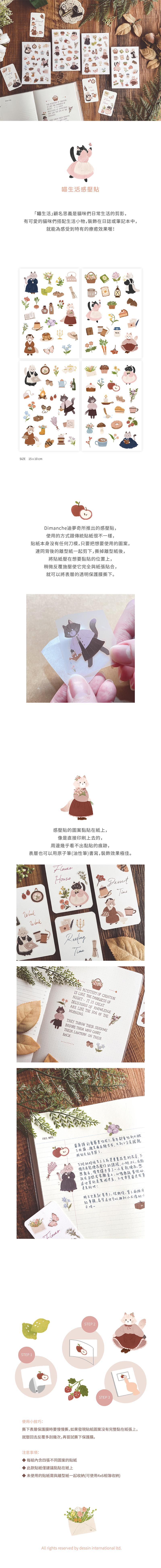 「喵生活」顧名思義是貓咪們日常生活的剪影,有可愛的貓咪們搭配生活小物,裝飾在日誌或筆記本中,就能為感受到特有的療癒效果唷!