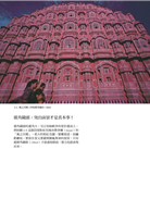 廣角鏡頭的畫角大,可以容納較多的景於畫面上。例如圖2-5這張印度粉紅色城市齋普爾(Jaipur)的「風之宮殿」,偌大的粉紅色牆,緊鄰街道,拍攝距離短,要拍全景又要避開雜亂無章的街景,只有超廣角鏡頭(18mm)才能盡收眼底,張力也能表現出來。