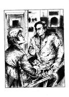 一個面無表情的老婦人,幽靈似的從窗口探了出來,看見福爾摩斯,問:「是區公所來的吧?有什麼事嗎?」