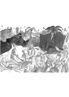另外一個地方,幾個大學生騎在窗框上,俯視著場內,信口開著玩笑。其中一個說:「喂,看哪!書店老闆米斯尼哀在那裡。」
