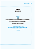2. 每章節結構安排以故事為引,搭配最後的摘要及作者提供的理論來源和延伸參考文獻,由淺入深,讓讀者按照自己程度,先吸收故事、理解核心概念後再決定是否延伸挖掘更多資料。