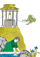 直到中秋節之後,有一天,他們又到井邊玩耍,吃著月餅。」──