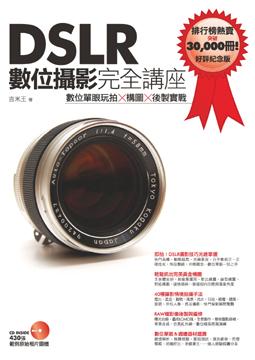 吉米王《DSLR數位攝影完全講座》銷售破萬紀念版!像這樣的照片,要怎麼拍?(請問,這個是怎麼拍的?)坊間的書,總是壁壘分明,高階的書沒有入門的概念,入門的書卻沒有實際而令人滿意的應用,這本書絕對不會讓你變成變成攝影大師,攝影大師所散發的迷人氣質是一種利用視覺傳達時間中的人心感動與空間中的人事物演繹的深層意義,這是需要時間與空間的記錄與磨練,但本書絕對可以讓你重拾對攝影的信心,與當初想要學習攝影時的那種想要記錄生活的重新感動,原來這才叫攝影,攝影也可以這樣玩。藉由靜物、旅遊、人像、動物、婚禮、風景、夜景、煙火、運動……等各類精彩實例,搭配拍攝概念詳解,引導出攝影者在按下快門瞬間的決定性想法、技巧與工具應用,並提供軟性與硬性的攝影觀念導正。即使是剛接觸單眼數位的玩家,也能按照圖解指示,馬上拍出優質相片。全書延伸學習調整鏡頭、角度、構圖與光圈…等攝影基本功夫,進一步熟通拍攝原理和各種手法的適用場合,並確實掌握修補、校色、合成…等特殊後製技巧,DSLR拍攝、後製、管理輕鬆快熟!給大家的第一本DSLR攝影書》即拍!DSLR攝影技巧光速掌握快門長曝、動態追焦、光圈景深、白平衡校正、正確控光、焦段壓縮、片幅概念…數位單眼一玩上手》輕鬆抓出完美黃金構圖主客體安排、前後景運用、對比構圖、線型構圖、群組構圖、破格傾斜…掌握視向空間與意象角度》40種攝影情境拍攝手法煙火、星空、動物、風景、流水、日出、婚禮、建築、旅遊、外拍人像、商品攝影…快門留駐瞬間驚豔》RAW檔影像後製與編修曝光曲線、藝術LOMO風、全景製作、雜物塵點修補、背景合成、仿真紅外線…數位暗房高階演練》數位單眼&週邊器材選購鏡頭解析、採購規劃、買前測試、清洗維修、閃燈種類、相機評比、老鏡重生……達人經驗傾囊分享