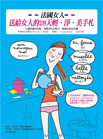 ★還有抒壓呼吸法、旅行時吃的好用小配方、各種可愛的排毒小測驗,讓妳從生活中落實健康快樂的心態!每一頁更有慵懶又高雅的法國女人探出頭來和妳打招呼、和妳一起加油!