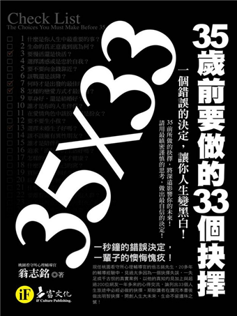 全台狂賣超過70萬本的《35×33》系列,每每上市即蟬聯各大書店暢銷排行榜。2005年《35歲前要做的33件事》、2006年《35歲前要有的33種態度》、2007年的《35歲前要上的33堂理財課》、《35歲前要有的33種能力》後,易富文化在2008年開春再度推出《35歲前要做的33個抉擇》──一本富含經驗之談與生活智慧的好書,字字珠璣,絕對不容錯過!