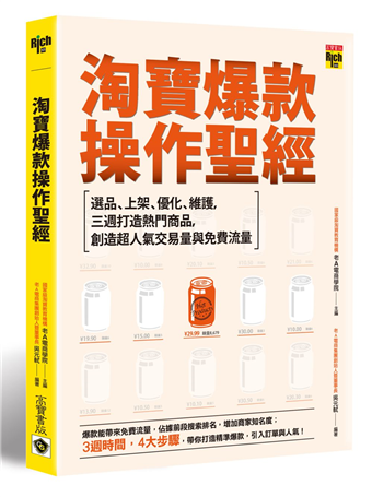 《淘寶爆款操作聖經:選品、上架、優化、維護,三週打造熱門商品,創造超人氣交易量與免費流量》主要講述如何為淘寶網店打造超常態交易量以及人氣的 「爆款寶貝」。