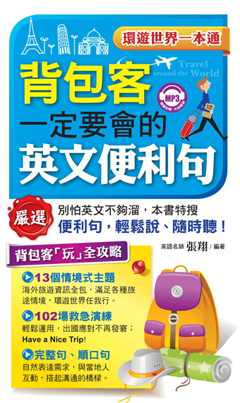 別擔心單字片語不夠用,本書會為讀者補充足夠的字彙能量,讓旅行不再「字」到用時方恨少!想知道青年旅館有哪些設備嗎?如何在外「方便」不出糗?每個單元的尾聲,都會分享背包客的經驗談,並提供實用的旅遊資訊,讓讀者擁有安全感。
