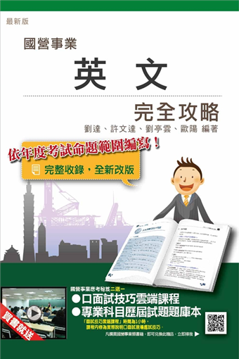 英文完全攻略(國營事業),除精細句型與文法說明外並輔以相關例題演練,讓您學習更加有效率!