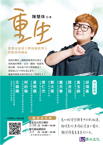 獄中由於志工的用心與宗教力量,她總算讀懂媽媽的眼淚。出獄後住進中途之家、生下意外報到的小女兒,展開不可能的重生任務。以沒學歷沒人脈、背景黑成一片的更生人身分,努力取得主管與保戶信賴,已在富邦人壽服務近14年。