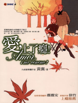 愛,上了癮Amor,imiveneno!(西班牙文:愛,我的毒癮。)愛,有如花冠上的露珠,只會逗留在清純的靈魂裡。拉姆奈只要去愛,我們心中就已埋藏了一顆成長旳種子;我們愛得愈多,就愈接近性靈經驗。保羅.科賀戀人們受到折磨,似乎是一條命運的定律,那麼讓我們練習著忍耐吧!因為這種折磨正與意念、幻夢、希望和哭泣一樣,都是可憐的愛情缺少不了的隨從。莎士比亞白色的「純真」、藍色的「憂鬱」、紅色的「熱情」,關於愛的顏色,關於愛感覺,輕輕將它調和在一塊兒,就成了容易使人上癮的、粉紫色的、浪漫的愛戀。黃襄的癮君子格言