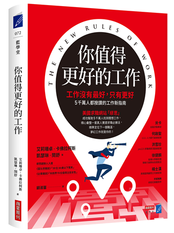 這並不代表,你會愛你的每個工作,或是天天都愛你的工作。其實很多熱愛眼前工作的人,也是熬過上司難搞、工時太長或工作沒有成就感的艱困時期後,才做到今天的職位。就算是我們這些喜愛自己工作的人,時不時仍會碰到不順遂的日子!但是我們相信,只要有正確的工具和視角,你可以找得到適合的工作,能讓你有意義、有目標的好日子多過壞日子,並引領你向有共鳴且充實的目標前進。