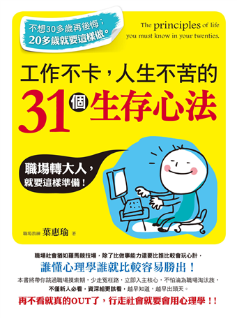 對那些二十多歲的年輕人來說更是無所適從,他們剛從校園步入社會,不僅面對的環境發生了變化,角色和人際關係也跟著改變了,必須面對很多從未經歷過的事情,出社會前,他們的責任是唸書,世界是以他們自己為中心,但是一旦踏進職場,他們不但要會...