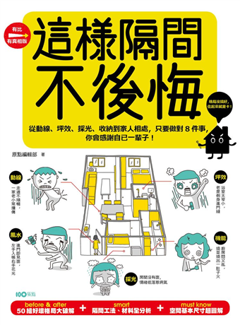 規劃空間時,該從何下手?本書將一步步帶你進入狀況。先列出需求清單,確定想法、尺寸,避免空間死角,與NG地雷。有了初步概念後,再深入隔間法則,從「動線」、「坪效」、「採光」、「機能」、「風水」、「娛樂」、「收納」到「家人相處」,8大不可不知重點,透過44個精彩格局,Before & After平面圖+照片對照,優缺點立刻分曉!