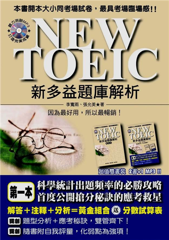 新多益考題靈活而全面,若未能掌握考試趨勢,如同無頭蒼蠅缺乏準備方向,想拿高分勢必事倍功半;國際學村在本年度推出《NEW TOEIC新多益聽力題庫大全》、《NEW TOEIC 新多益閱讀題庫大全》兩大鉅獻、並獲銷售佳績後,再接再厲推出《NEW TOEIC 新多益題庫解析》,一氣呵成提供應試者最佳參考書籍,想獲得優異成績自然事半功倍。