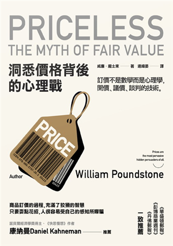 暢銷作者威廉.龐士東,在書中揭露隱藏在價格背後的心理操弄,以及生活中無處不在的價格陷阱。我們很難知道一個物品的價格,是否能與其真正的價值相襯。為何金頂電池就是比他牌電池貴(有誰真的測量過電池壽命孰長孰短)?為何一個Prada手機吊飾跟夜市小販販售的價差這麼大(可疑的是你心甘情願刷卡買Prada,但卻盤算著怎麼跟夜市小販殺價)?