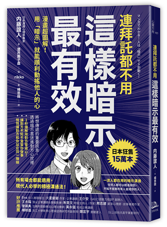 大多數的人都覺得,要做到以上這些行為,一定需要很艱深的心理學方法與卓越的溝通技巧──但事實上,只要學會「暗示」,任何人都可以輕鬆辦到!本書將透過漫畫無痛介紹可從日常生活中積極使用暗示的方法。