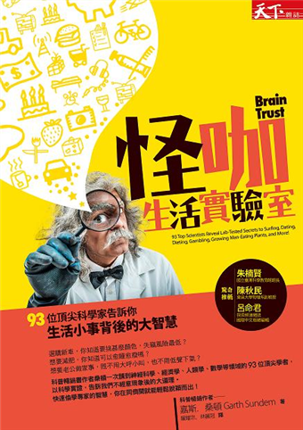 朱楠賢(國立臺灣科學教育館館長) 陳秋民(東吳大學物理系副教授) 呂命君(探索頻道雜誌國際中文版總編輯) 來一碗太陽麵線! 東吳大學物理系副教授 陳秋民 喜歡科學的人,對科學探究的樂趣在於,噢!我終於搞懂了爲什麼會這樣。 對科學沒興趣的人,常說的卻是,這事想當然爾,有必要弄得這麼複雜嗎? 科學研究的目的到底是要將一件想當然爾的事搞得更複雜,還是要將複雜的事給單純化?無論如何,科不科學似乎都不影響大部分人快樂的過日子,想太多反而缺少了那麼點浪漫。 這本書,我覺得它最大的功效,不在於學到生活中雞毛蒜皮大小事,其背後隱藏的科學大道理,而在對於平常覺得不可思議或難以釋懷的事,有了自覺合理的解釋。 舉例說吧!我們家領導簽樂透彩時,我總是告訴她,你選6個幸運號碼,和我簽1、2、3、4、5、6,中獎機率是一樣的。以我的科學專業根本無法說服她,說也奇怪,她的幸運號碼偶爾會給家裡意外地加點菜,而我專業的1、2、3、4、5、6,卻從沒有中過任何獎。這本書讓我學到了,我倆對中獎可能性的認知不同,不在於理工或文史專業教育的養成,根本上男人和女人的腦袋就是不一樣。 我們家寶貝女兒常懊惱說小時候發生的糗事,當時她指着牆上菜單的「大腸麵線」大聲地對老闆娘說︰「我要一碗太陽麵線!」引來餐廳一陣鬨堂大笑。現在我可以告訴她,這不是你的問題,或許是書上說的DNA在作怪。 當年在我無憂的少年時期,幾乎翻遍書局的所有書,卻直到高三才猛然發現,架上那本從沒興趣也不會翻閱的書,原來不是叫做「少年維持的煩惱」。 註︰《少年維特的煩惱》為德國作家歌德(Johann Wolfgang von Goethe)享譽世界的的浪漫小說。 No.94智慧號碼牌,你的 探索頻道雜誌國際中文版總編輯 呂命君 當你試圖打開這本書的時候,可要當心囉,因為你打開的,可是一扇奇趣、精采還有些風險的,通往怪咖生活實驗室之門。 怪咖生活實驗室裡充塞消費、職場、溝通、人際、飲食、生活、心理、運動、娛樂等日常生活瑣事,而在這些日常瑣事前,嘉斯.桑頓(Garth Sundem)聚集了來勢洶洶的93個頂尖智慧家,等著你。 嗯,看到這,馬上回答我,你怕了吧!? 啊哈,只要當心,不必害怕。更不必急著移民到外太空。 根據怪咖生活實驗室裡93個頂尖智慧家之一的那位康乃狄克大學(University Of Connecticut)教育心理學教授葛林斯班(Stephen Greenspan)的說法:要你立刻做決定,多半是騙局。所以我可能是騙你的。當然,也可能不是。 哎呀,畢竟地球上的生命,歷經四十億年的時間,逐漸演化成現在這麼繽紛多采的花花世界也挺不簡單的嘛。所以真假難辨的人、事、物當然多著呢!怎麼辦?怎麼辨呢?單身是個不錯的應對方式。我可沒瞎扯。怪咖生活實驗室裡來自蒙特克萊爾州立大學(Montclair State University)的認知神經影像實驗室主任、分子生物系教授基南(Julian Keenan)說:單身的人,比較不容易受騙。好啦,我承認,這段是我刻意挑出來自我安慰的。公平起見,再爆個雷,怪咖生活實驗室裡那位2001年諾貝爾經濟學獎得主,現任加州大學柏克萊分校(University of California, Berkeley)經濟系教授艾克洛夫(George Akerlof)說:已婚者稱讚老公是男子漢,可以讓他多做一點家事。 總之,當出版社要求我推薦這本書,我同意了。你也確實可以相信我的推薦——基於書中科學家基南的論點:身為未婚單身者的我,不容易受騙。所以,我「自信」絕對沒有受騙上當。當然,也可能過段日子我會推翻這說法——基於科學不斷求證的必然。 這確實是挺有趣的一本科普書。讓我確實遇見了怪咖生活實驗室裡聚集的這群有趣的93個頂尖智慧家。 此刻,怪咖生活實驗室裡,聚集了這群有趣的93個頂尖智慧家,等著你;怪咖生活實驗室外,你可以選擇帶走這本書。翻開這本書就等於打開怪咖生活實驗室的這扇門,通過這扇門,讓你的生活遇上科學,那麼,No.94智慧號碼牌就在你伸出手的那一刻,確實握在你手上囉。